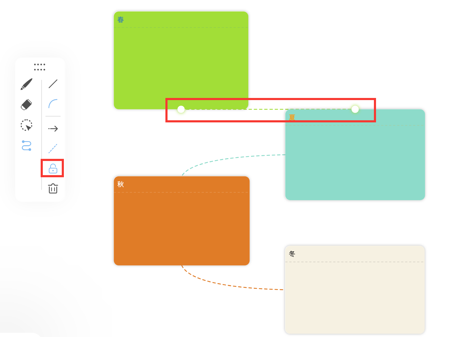 如果要绑定两个卡片的位置,可点击锁定图标,锁定位置。