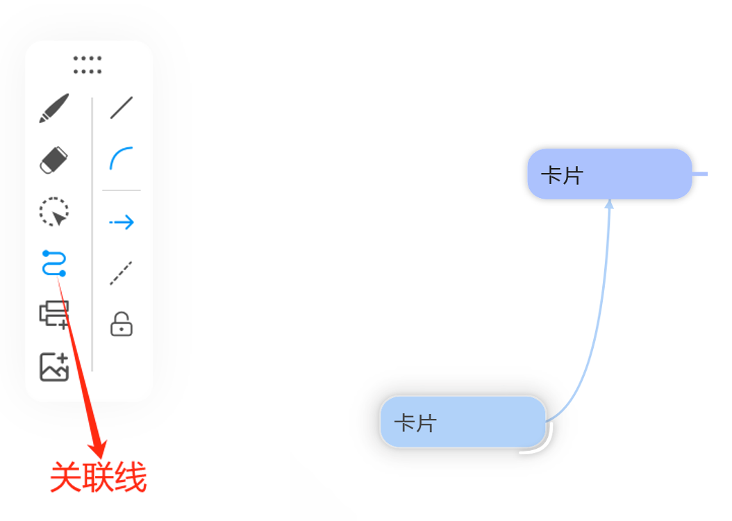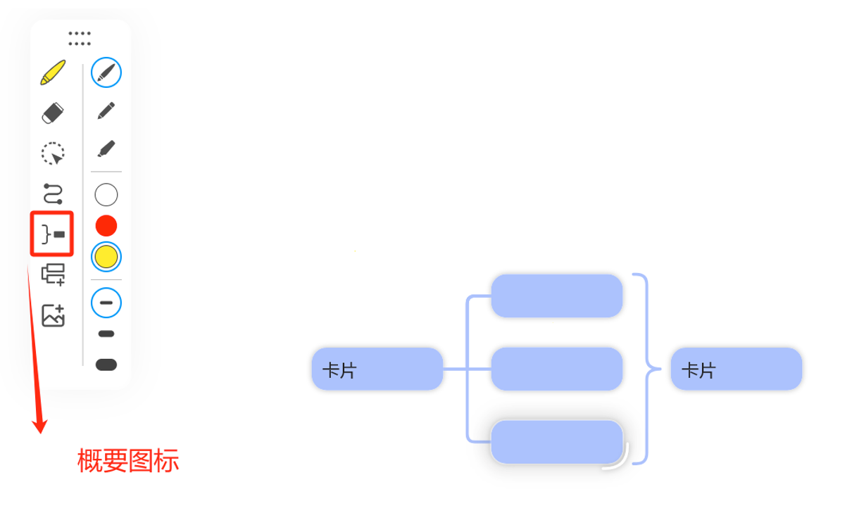 01、如何添加反括号?点击任意卡牌——点击左侧“概要图标”02、如何实现多个卡片概要?先点击概要卡片,会出现概要框选范围,拉动方框即可02、 如何添加关联线?点击任意空白位置——“插入卡片” ——点击“关联系”——再依次点击想要关联的卡片