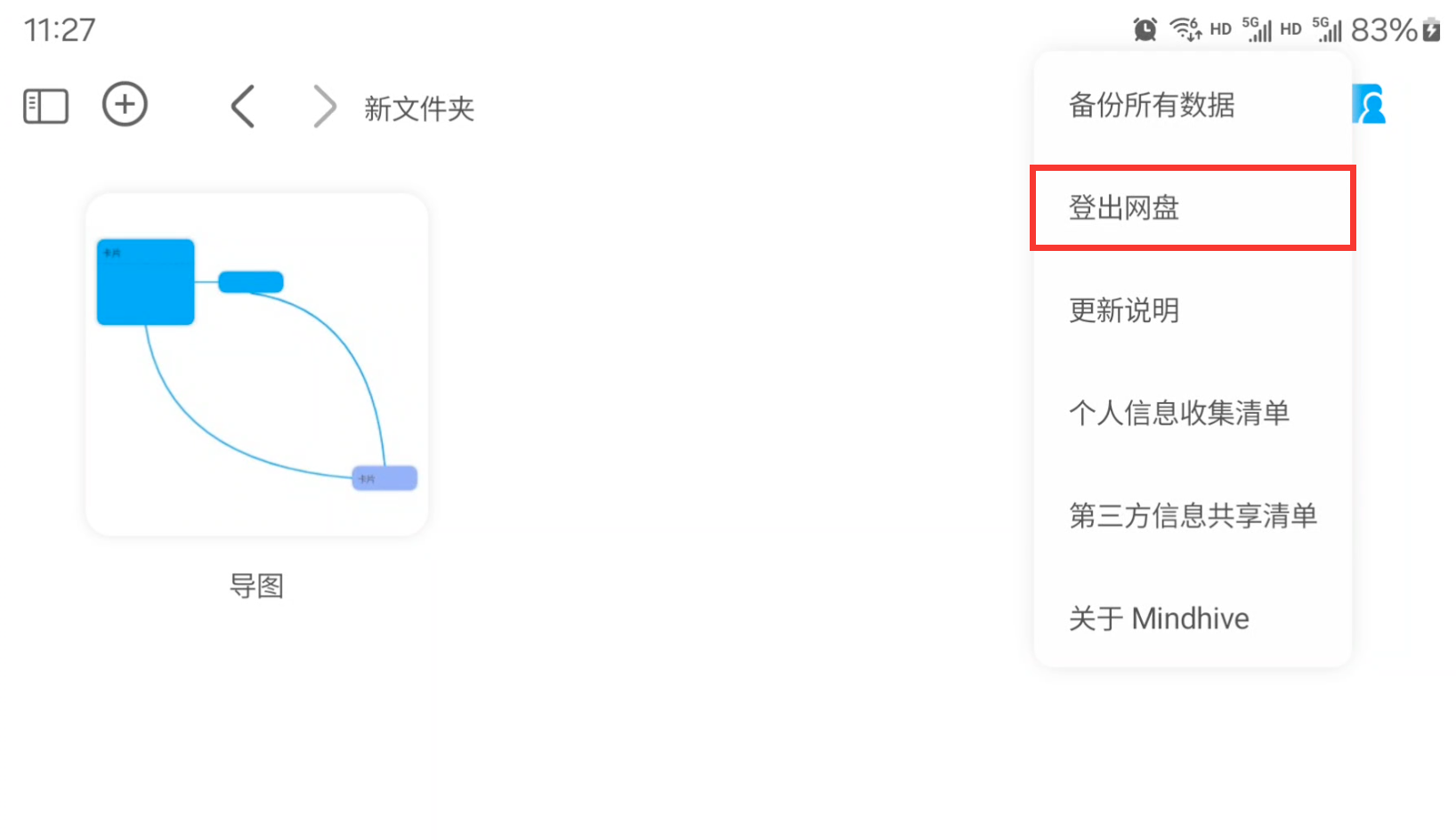 点首页右上角图标, 会显示 “退出网盘”, 点击即可